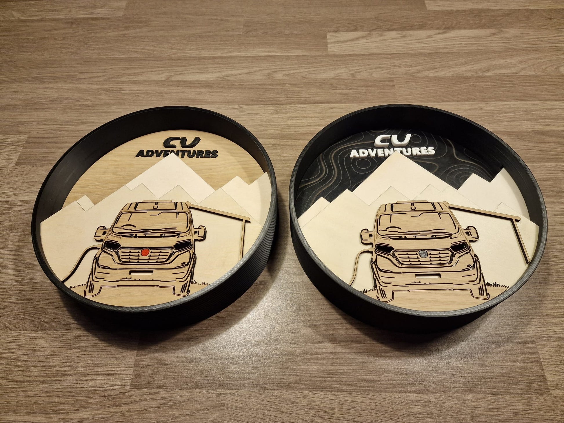 Three background variants: Oak, Black or CV